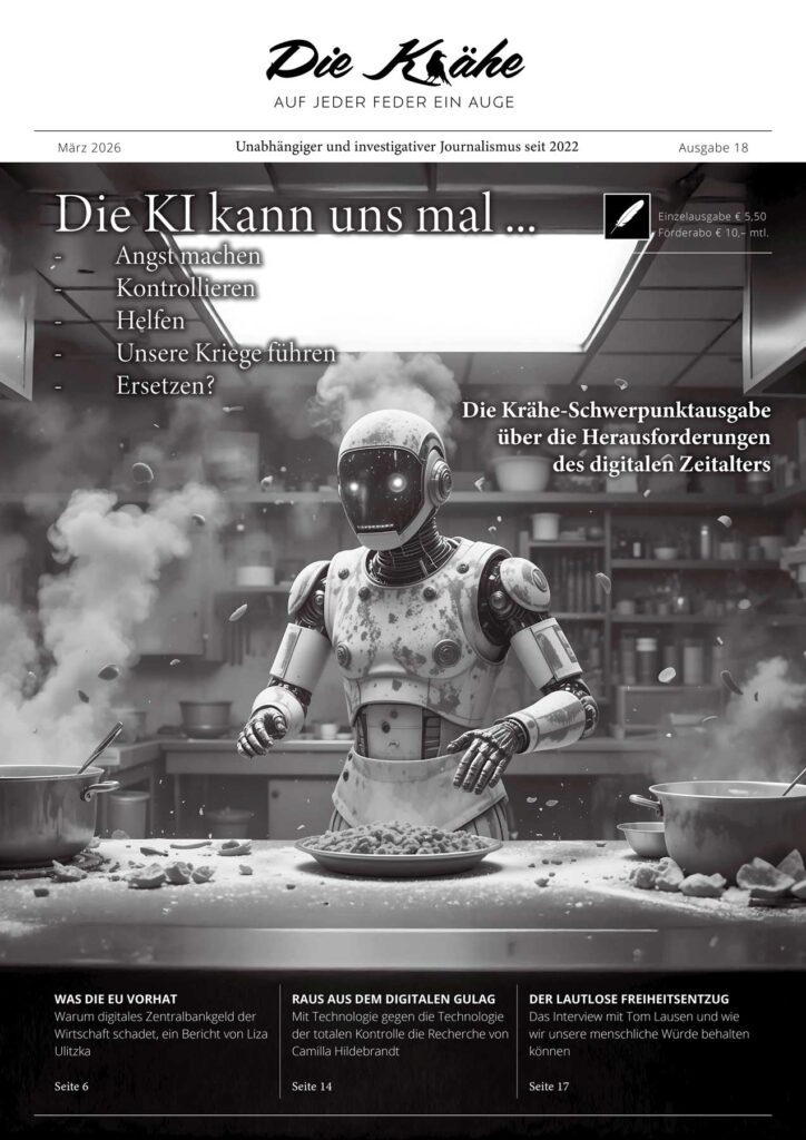 Der deutsche Datenanalyst Tom Lausen, den Die Krähe für die aktuelle Ausgabe zum Interview gebeten hat, hat sich Gedanken über die Folgen von KI und Digitalisierung gemacht. Um Bewusstsein für den Erhalt analoger Rechte im digitalen Zeitalter zu schaffen, hat Lausen einen Gesetzesentwurf für "die Erhaltung der menschlichen Würde im digitalen Zeitalter" geschrieben. Unten können Sie den Gesetzestext lesen.